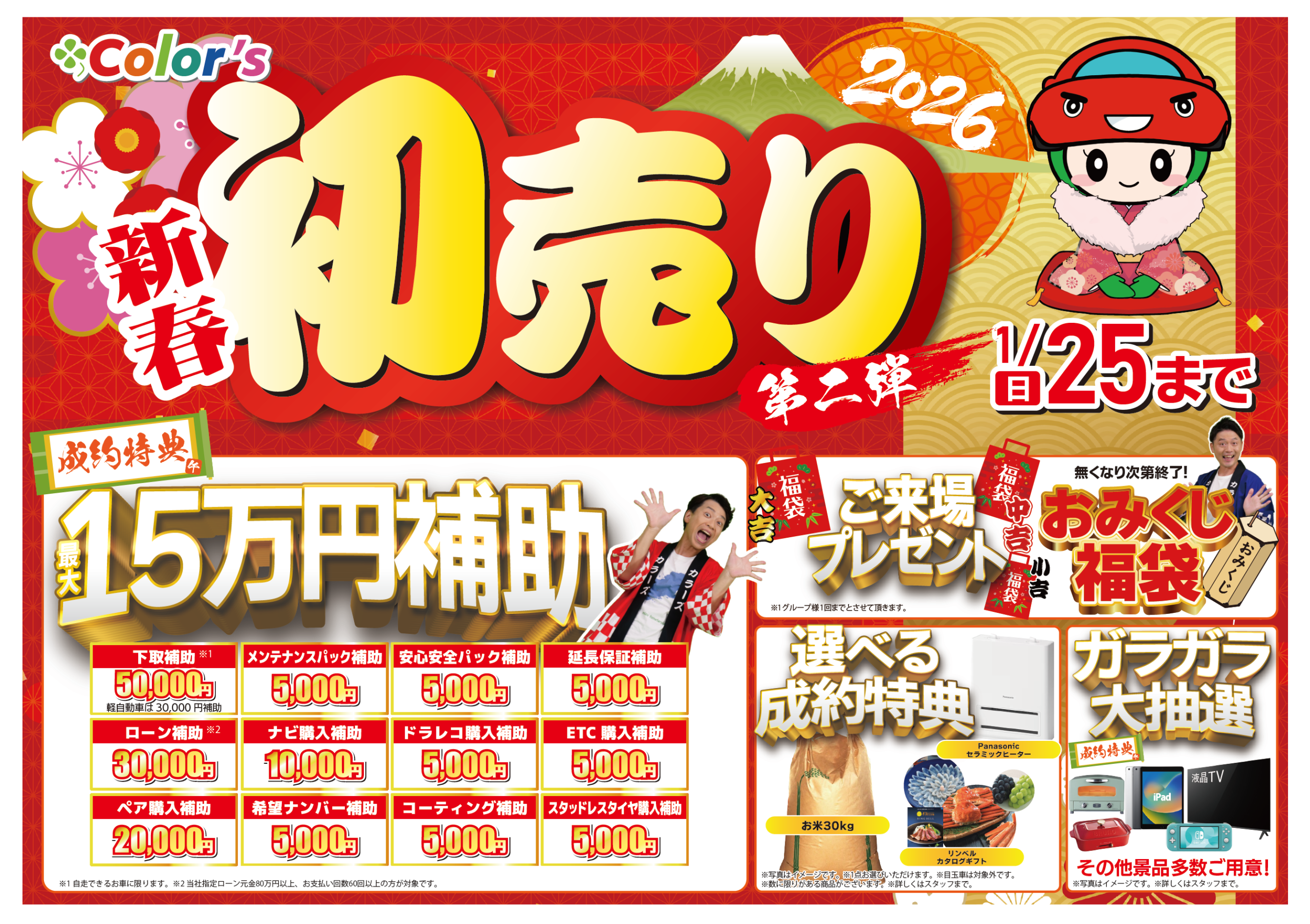 1月はカラーズ『新春初売り』開催!!★滋賀県で車を買うならカラーズ★ – カラーズ (Color's)