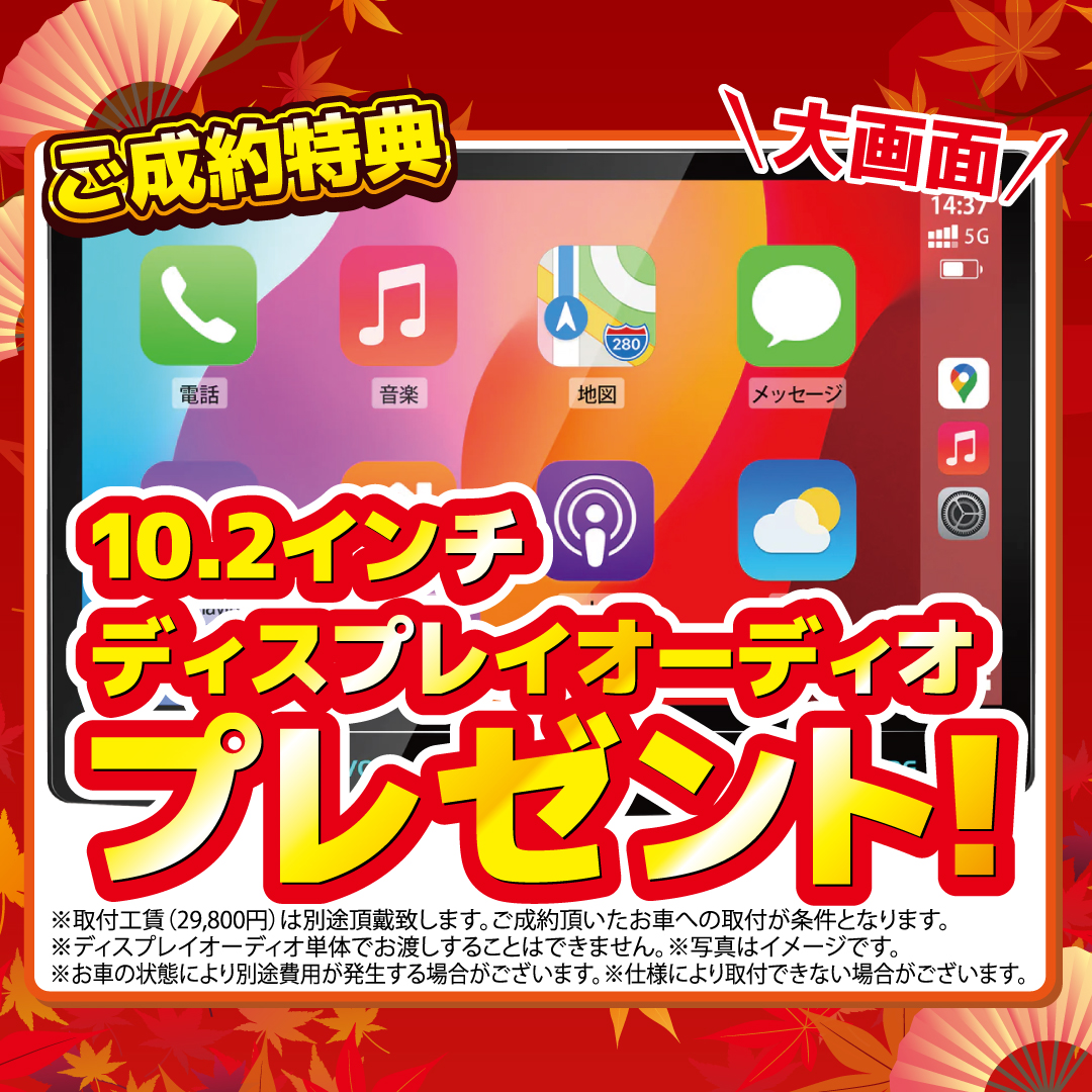 期間中のご成約で、なんと10.2インチディスプレイオーディオプレゼント!