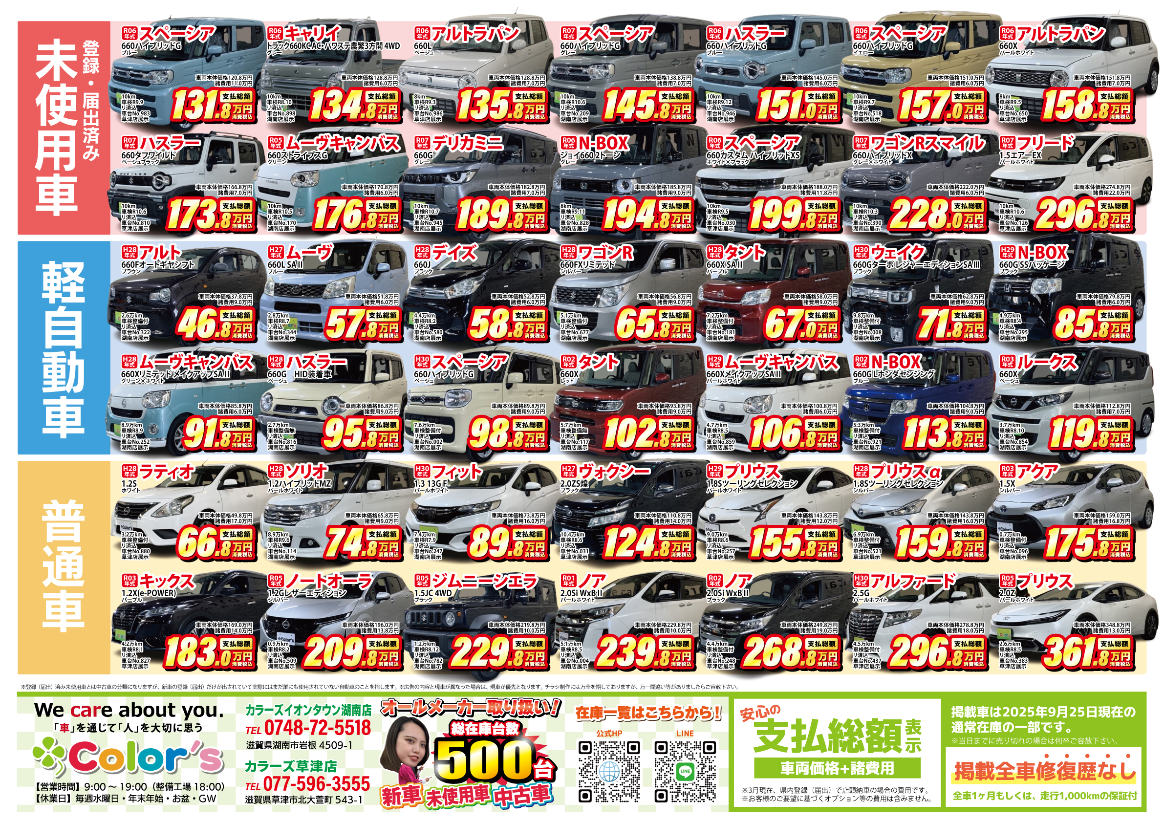 イオンタウン湖南店と草津店同時開催で、豪華成約特典と限定目玉車をご用意して皆様のご来店お待ちしております。