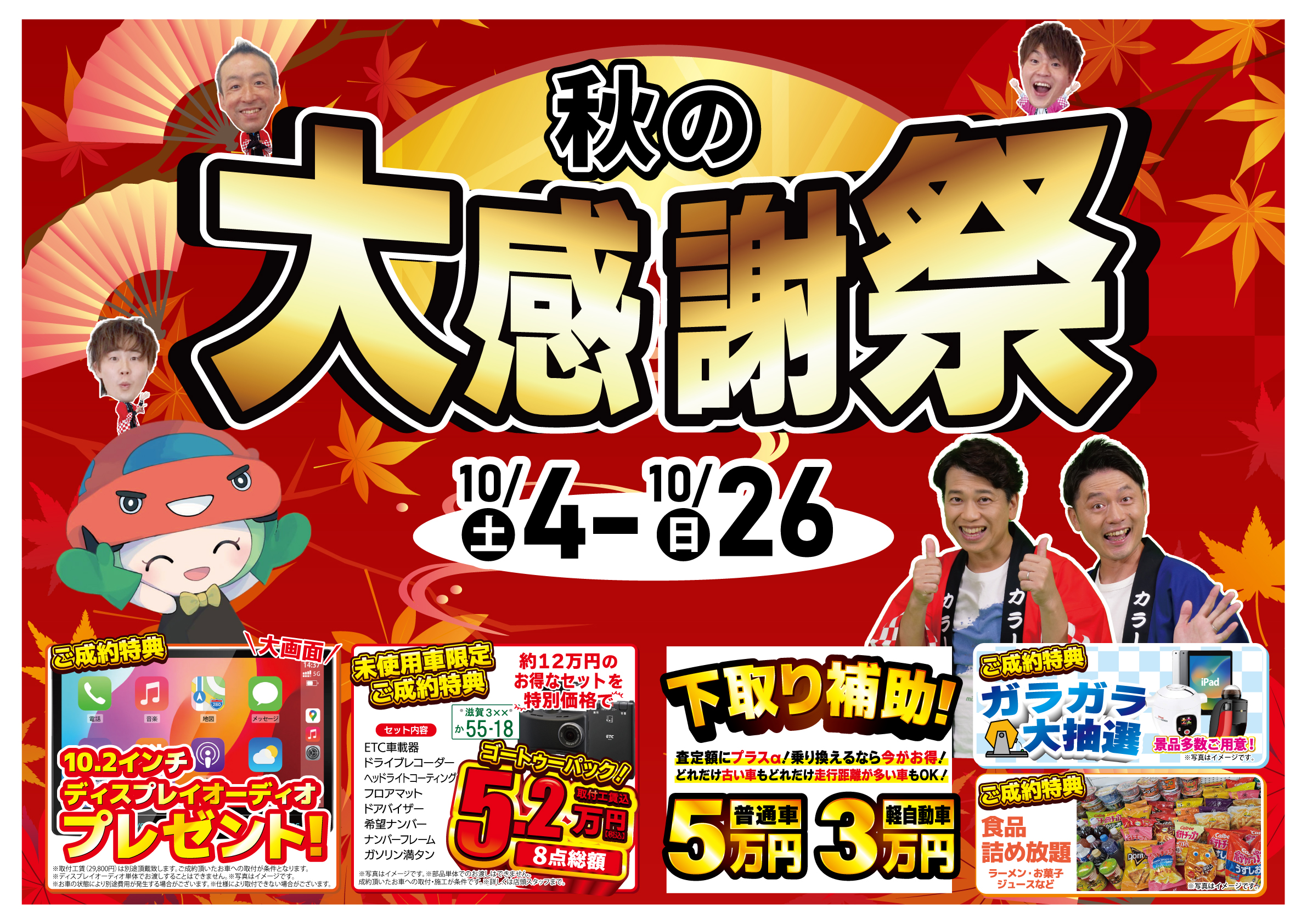 10月イベント『秋の大感謝祭』開催!!★滋賀県で車を買うならカラーズ★