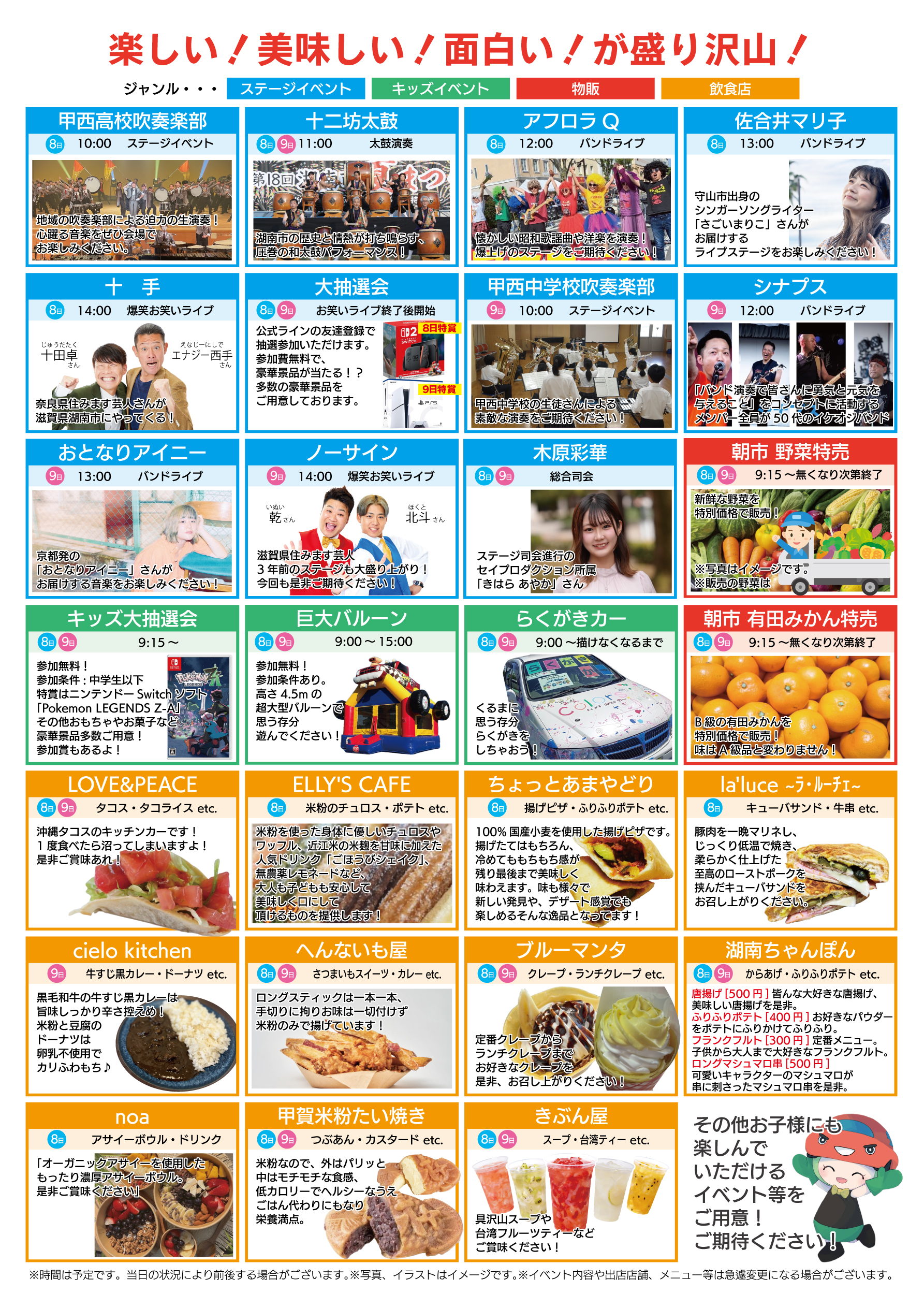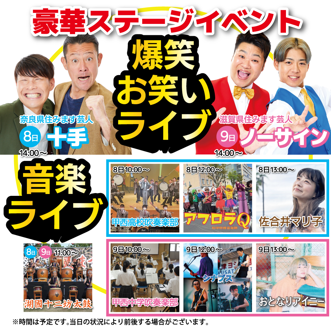 入場無料です!楽しいイベント盛りだくさんで皆様のご来場お待ちしております。